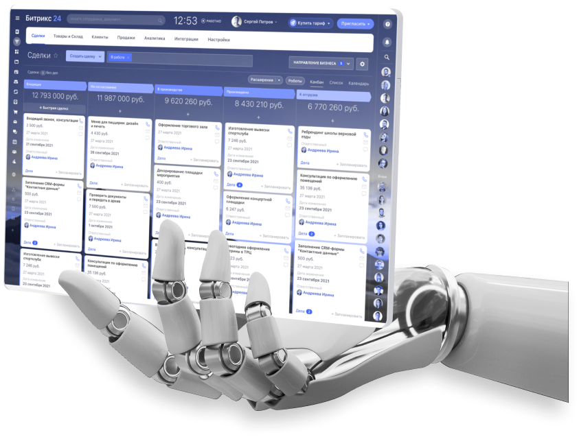 Корпоративный портал Битрикс24 предоставляет вам все необходимые возможности коробки. Доступны любые кастомные доработки от внешнего вида сделки до сложных автоматизированных бизнес процессов